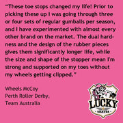 Antik Skates Superball Toe Stops are huge, long lasting and unlike any other roller skate toe stop on the market.