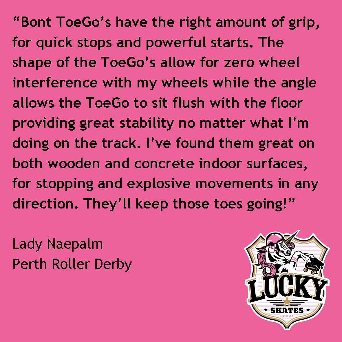 The Bont Toe Go toe stops were designed by Bont pro roller skaters, who constantly use their stoppers for a variety of purposes.
