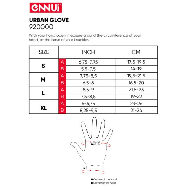 Ennui Urban Gloves Wrist Guards Size Chart