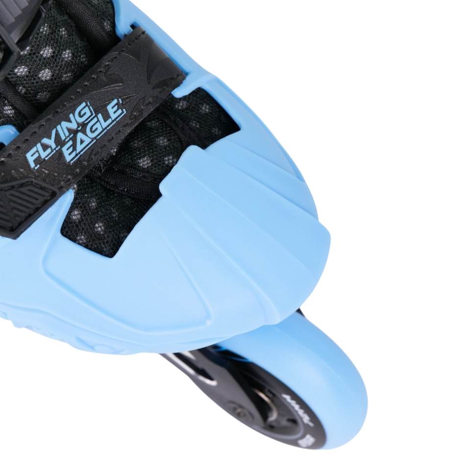 Flying Eagle S7 Nimbus inline skate in blue is a premium kid's adjustable skate designed to support young skaters of all skill levels, providing the perfect balance of safety, comfort, and performance.