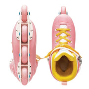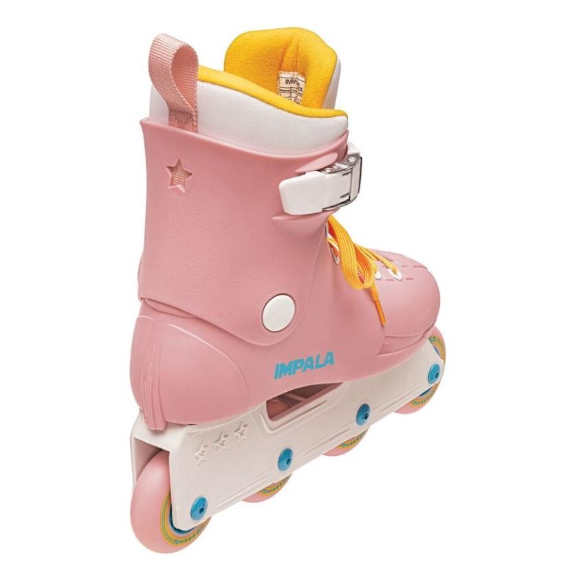 Roll the street or get to the rink in these trendy pink and yellow blades from Impala.