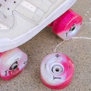 Light up while you roller skate with the Outdoor 78A Luminous Cotton Candy Pink LED Quad Wheels!