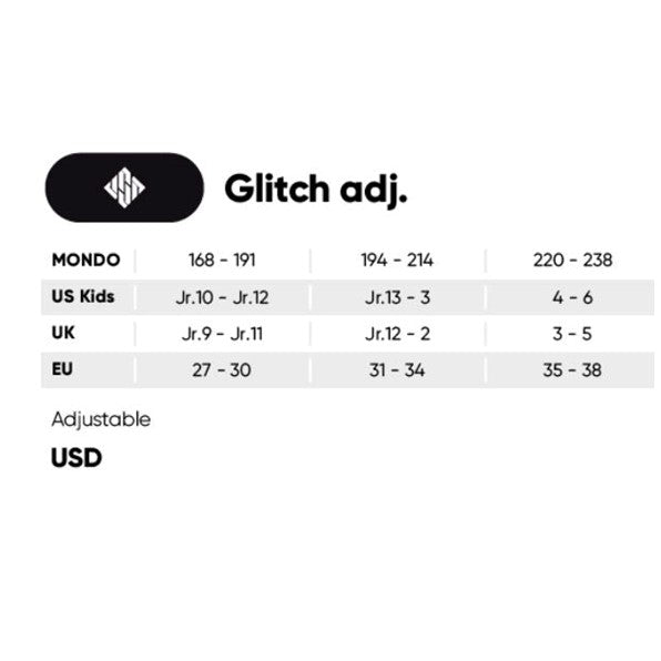 USD Glitch Kids Adjustable Inline Skate Size Chart