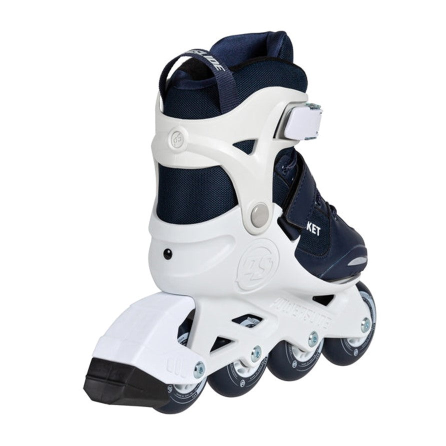 Blast off into non-stop rolling adventures with the Powerslide Rocket navy blue/white skates for children.