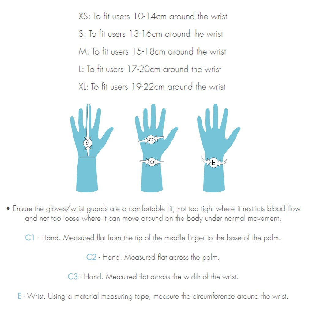 Fit: Measure circumference at wrist joint and refer to size chart.