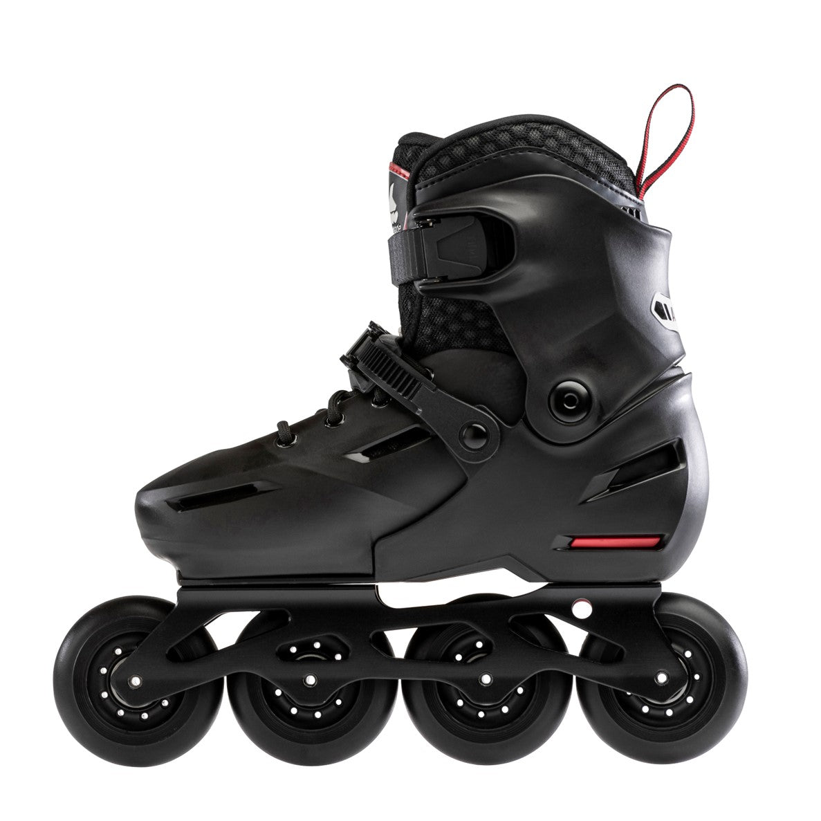 Lateral slider plates, a secure buckle closure system and frame length paired with corresponding matte finished wheels ensure ideal manoeuvrability.