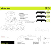 - Rollerblade Urban wheels depending on skate size: 68mm (Size 1), 72mm (Size 2) and 76mm (Size 3)
