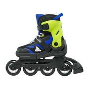 Get the kids skating on these cool and adjustable black and blue Rollerblades with green accents!