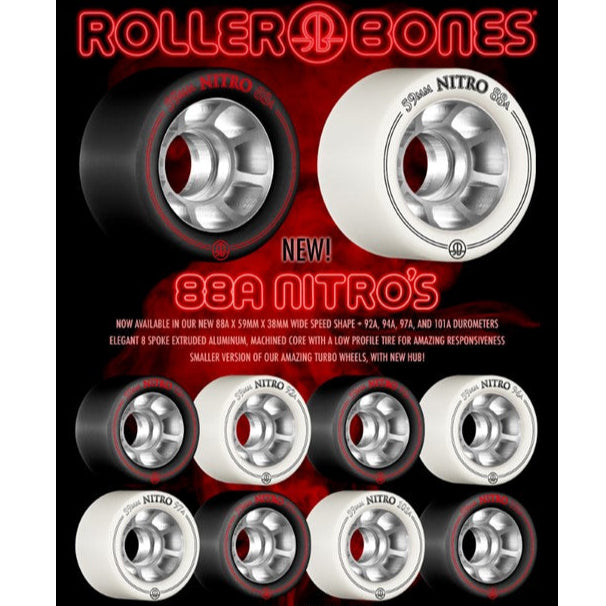 Rollerbones Nitro roller skate wheels are the younger sibling to the Turbo wheels.