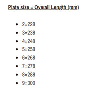 Fit: Make sure you measure your boot and decide on what length plate you want before ordering. Plate size varies between the brands so decide on the length first, check the chart and then order. Plate size is also different to boot size in most cases so measure up.