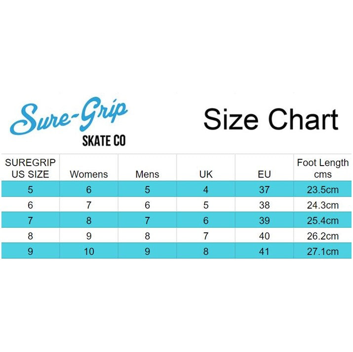 Sure-Grip Roller Skate Size Chart