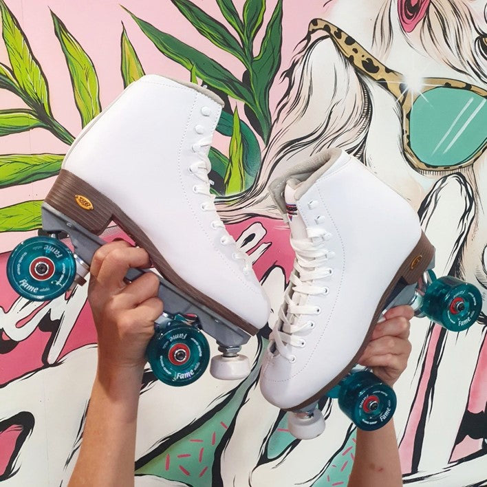 Using premium competition urethane, the Sure-Grip Fame Clear Artistic wheels are 57mm in size.