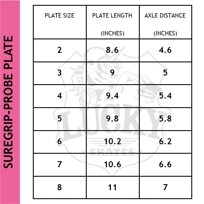 Fit: Plate size varies from plate to plate so you will need to measure the size that you want and compare to the size chart before ordering. Once you know what length you want, make sure the size is available.
