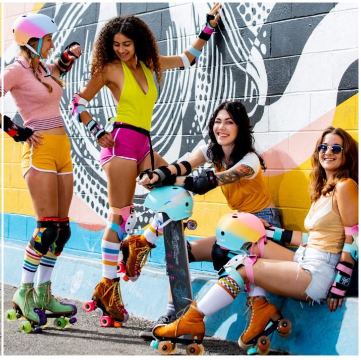 Protect your brain with this certified skate helmet from Triple Eight featuring a pastel ombre design with pink, yellow and blue accents.